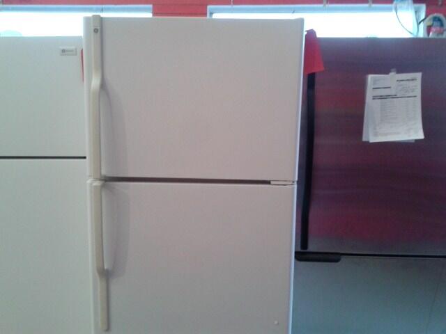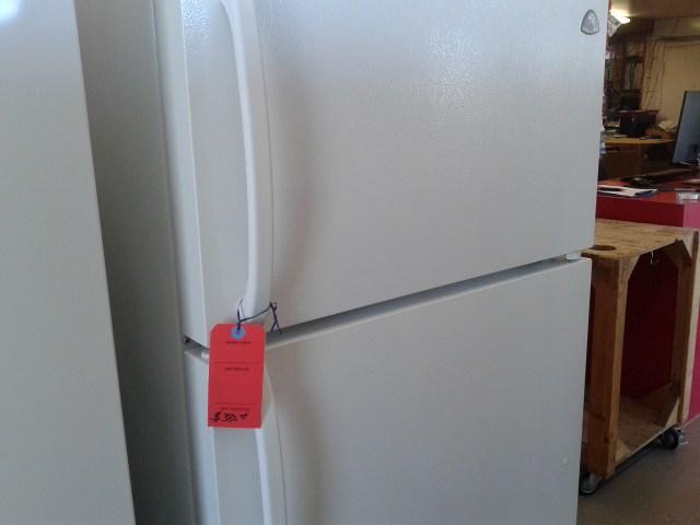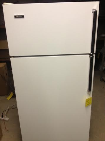 Refurbished G.E. refrigerator. 28 inches wide, 64 1/2 inches high, 28 inches deep. Top freezer.