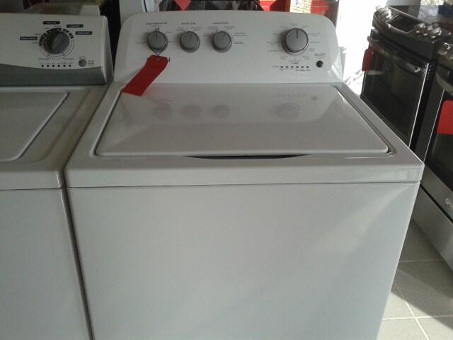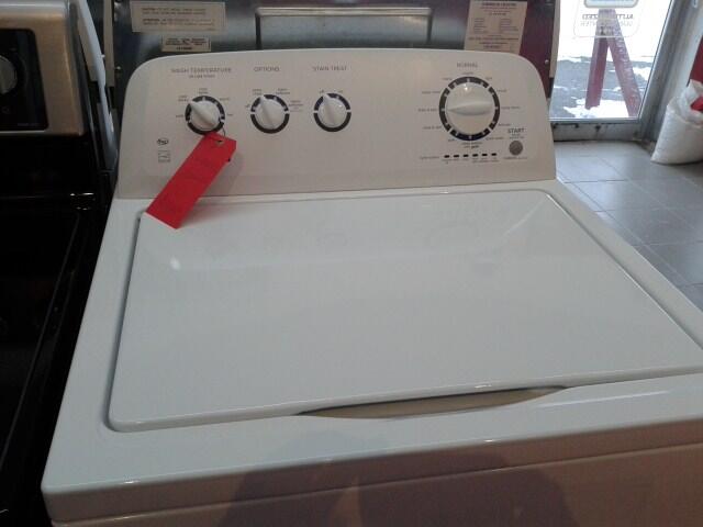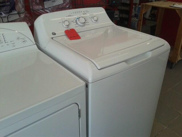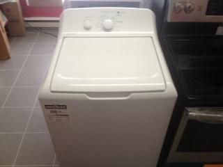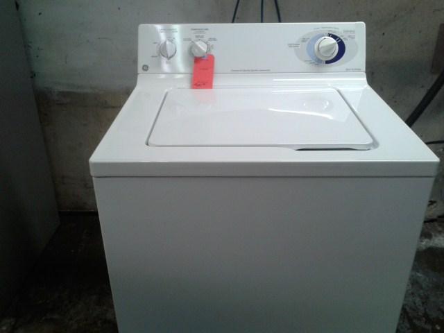 General Electric clothes washer, white, unpacked -5.3 cubic feet capacity -No agitator -Hydrolic cover (allows the cover to close smoothly and not damage the door) -Stainless steel tub -4 temperature settings -4 spinning speed settings -options : Extra rince cycle / adjustable signal noise level size: 26 7/8 inch large 26 5/8 deep 10 YEARS WARANTY ON MOTOR. SUGESTED PRICE: 949$ OUR REDUCED EVERYDAY PRICE 778$ ACCORD D FINANCING AVAILABLE FOR AS LOW AS 17.90$ PER MONTH ! item code:AH304021c