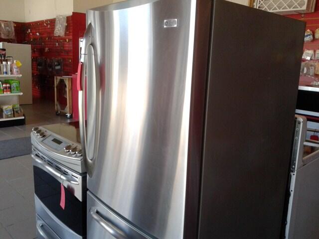 refrigerateur Ge bottom freezer stainless glass shelf luxury and security check by our technician new value of $ 1,950