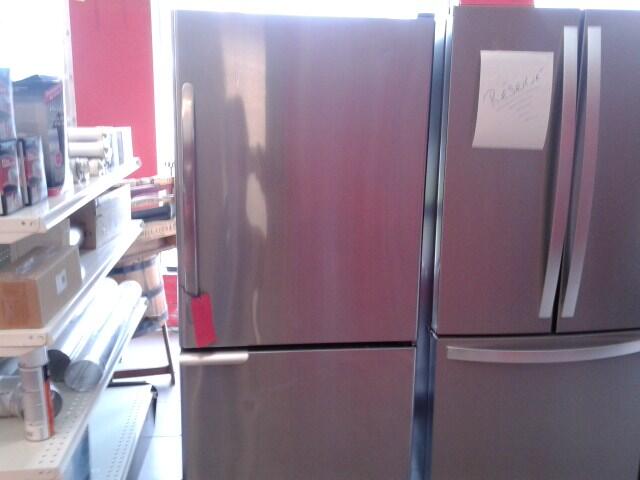 Refrigerateur frigidaire en stainless tres propre verifier et garantie 18 pied cube tablette en verre valeur a neuf 1200$ mod 1246